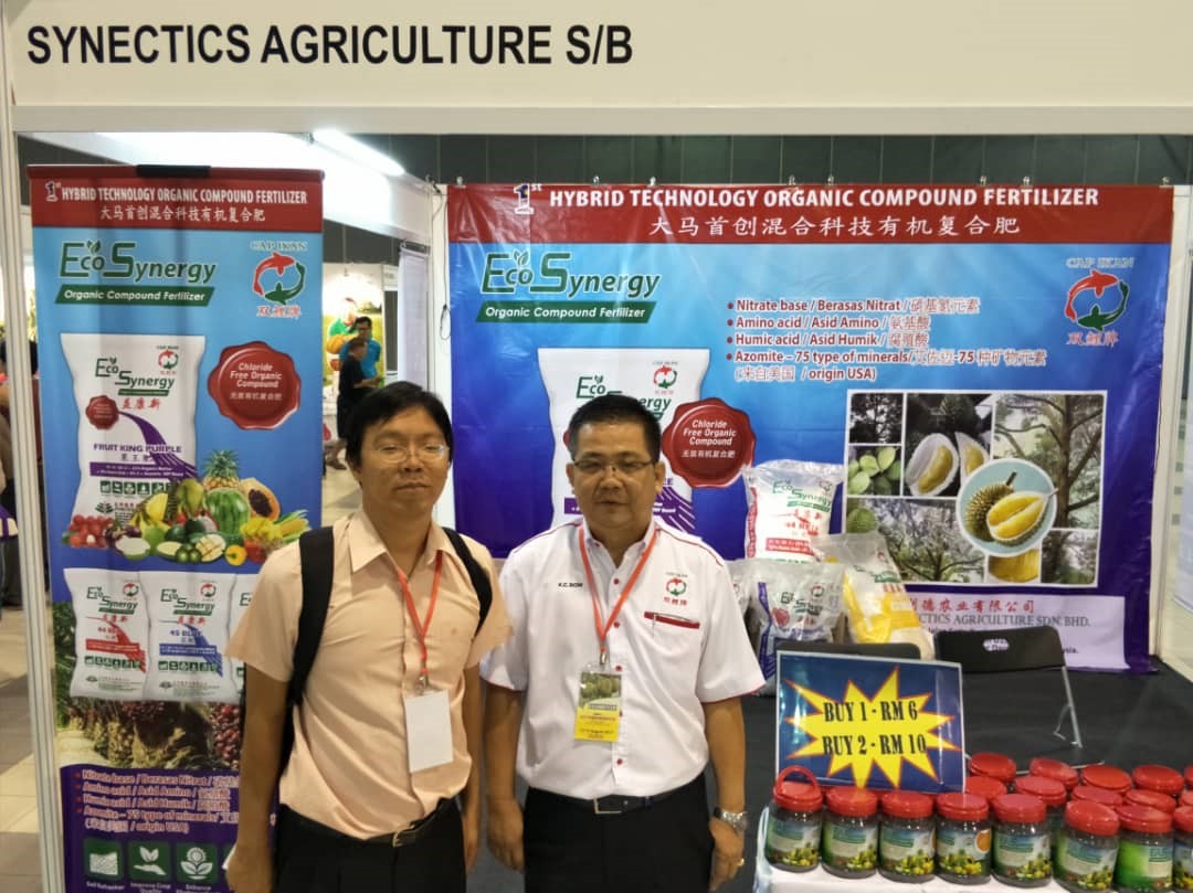 Introducing nitrated based organic compound fertilizer with chloride free, Eco Synergy Fruit King Purple (10/6/20/2 with 5% Humic Acid, 8% Sulphur, 30% organic matter and AZOMITE®). This formula is highly suitable for mature crops which is sensitive to chloride content. Humic acid and mixed amino acids chelated minerals for better nutrient uptake efficiency.