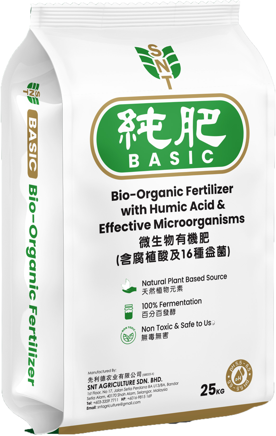 SNT『純肥』微生物有機肥是從大豆、咖啡豆和小麥等植物中提取的新一代有機肥。他除了富含腐植酸,有机肥还由16種微生物組成,包括釀酒酵母、嗜酸乳桿菌、枯草芽孢桿菌、米曲霉、地衣芽孢桿菌、巨大芽孢桿菌、腸胃芽孢桿菌、鏈球菌、硝化桿菌、假單胞菌等。
